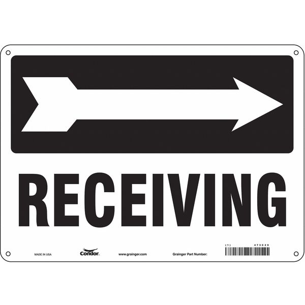 Safety Sign, 10 in Height, 14 in Width, Aluminum, Horizontal Rectangle, English, 473C29SKU G5548160Categories SafetyDescription Safety Sign, Horizontal Rectangle, Number of Printed Sides 1, English, Sign Format Other Format, Sign Legend Receiving (Right Arrow), Sign Legend Background Color White, Sign Legend Style Symbol and TextgraingerSKU: 473C29, mscSKU: , zoro_no: G5548160, mongo_id: 65bbe9ad22d7a989a996f2a7
