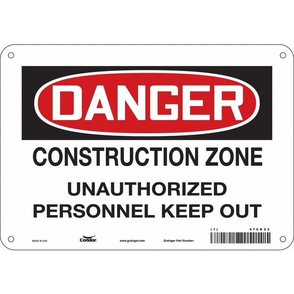 Safety Sign, 7 in Height, 10 in Width, Aluminum, Vertical Rectangle, English, 476K23SKU G5854779Categories SafetyDescription Safety Sign, Vertical Rectangle, Number of Printed Sides 1, English, Sign Format Traditional OSHA, Sign Legend Construction Zone Unauthorized Personnel Keep Out, Sign Legend Background Color White, Sign Legend Style TextgraingerSKU: 476K23, mscSKU: , zoro_no: G5854779, mongo_id: 65bbe9ad22d7a989a996f2bf