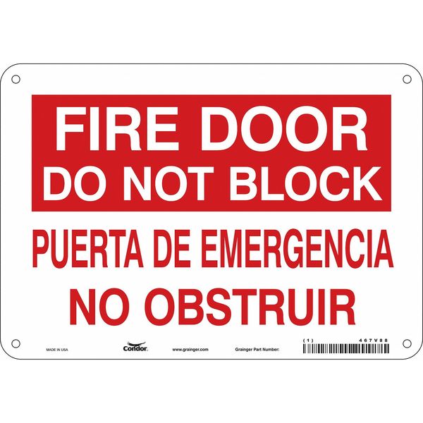 SKU G5102629Categories SafetyDescription Safety Sign Emergency Exit, Vertical Rectangle, Number of Printed Sides 1, English, Spanish, Sign Legend Fire Door Do Not Block / Puerta De Emergencia No Obstruir, Sign Legend Background Color Red, White, Sign Legend Style TextgraingerSKU: 467V88, mscSKU: , zoro_no: G5102629, mongo_id: 65bbe9ad22d7a989a996f1f9