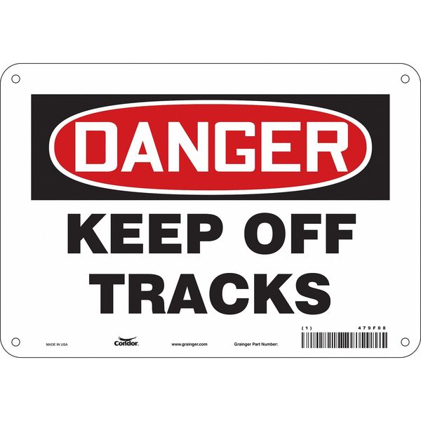 Safety Sign, 7 in Height, 10 in Width, Aluminum, Vertical Rectangle, English, 479F08SKU G5849468Categories SafetyDescription Safety Sign, Vertical Rectangle, Number of Printed Sides 1, English, Sign Format Traditional OSHA, Sign Legend Keep Off Tracks, Sign Legend Background Color White, Sign Legend Style TextgraingerSKU: 479F08, mscSKU: , zoro_no: G5849468, mongo_id: 65bbe9ad22d7a989a996f1d1