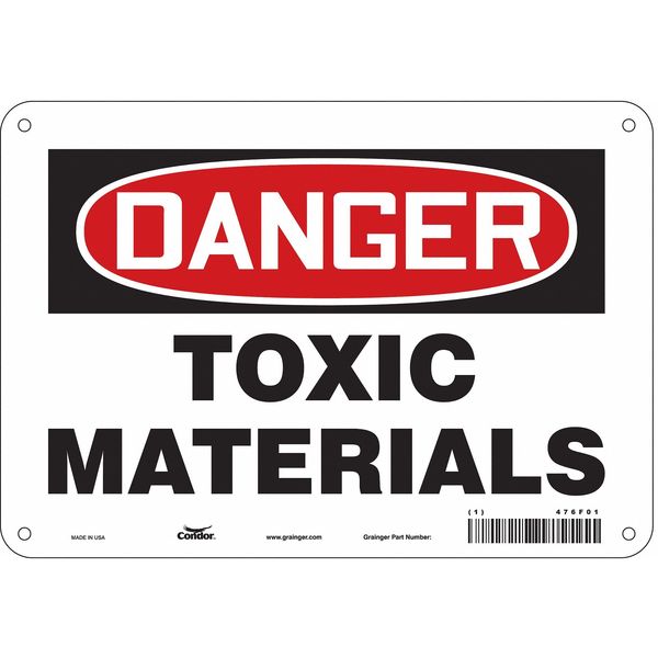 Chemical Sign, 7 in H, 10 in W, Vertical Rectangle, English, 476F01SKU G5842203Categories SafetyDescription Chemical Sign, Vertical Rectangle, Number of Printed Sides 1, English, Sign Format Traditional OSHA, Sign Legend Toxic Materials, Sign Legend Background Color White, Sign Legend Style TextgraingerSKU: 476F01, mscSKU: , zoro_no: G5842203, mongo_id: 65bbe9ad22d7a989a996f22d