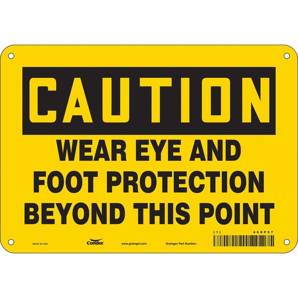 Safety Sign, 7 in Height, 10 in Width, Aluminum, Vertical Rectangle, English, 468P57SKU G5618039Categories SafetyDescription Safety Sign, Vertical Rectangle, Number of Printed Sides 1, English, Sign Format Traditional OSHA, Sign Legend Wear Eye And Foot Protection Beyond This Point, Sign Legend Background Color Yellow, Sign Legend Style TextgraingerSKU: 468P57, mscSKU: , zoro_no: G5618039, mongo_id: 65bbe9ad22d7a989a996f188