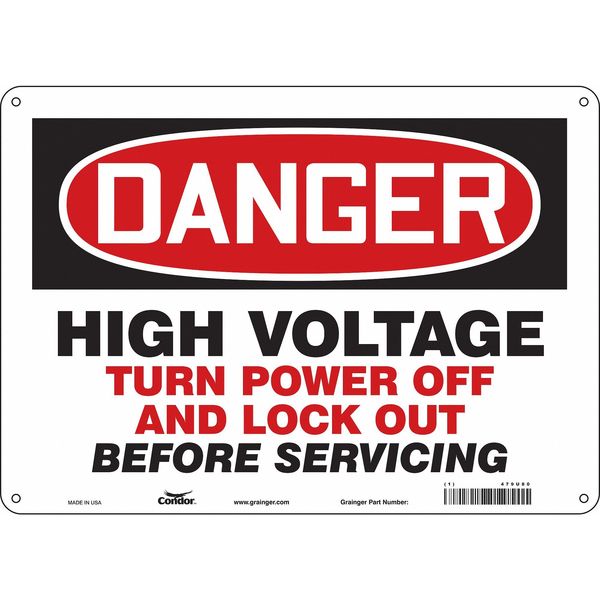 Safety Sign, 10 in Height, 14 in Width, Aluminum, Horizontal Rectangle, English, 479U80SKU G5805657Categories SafetyDescription Safety Sign, Horizontal Rectangle, Number of Printed Sides 1, English, Sign Format Traditional OSHA, Sign Legend High Voltage Turn Power Off And Lock Out Before Servicing, Sign Legend Background Color White, Sign Legend Style TextgraingerSKU: 479U80, mscSKU: , zoro_no: G5805657, mongo_id: 65bbe9ad22d7a989a996f194