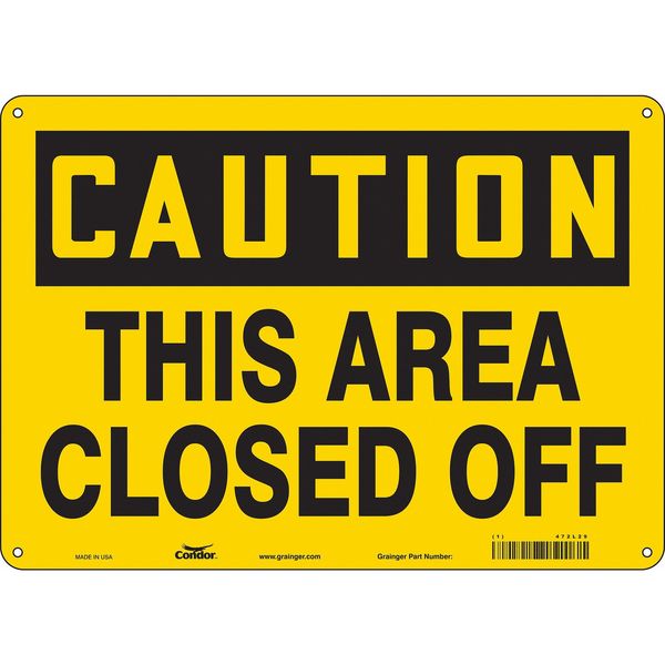 SKU G5884057Categories SafetyDescription Safety Sign, Horizontal Rectangle, Number of Printed Sides 1, English, Sign Legend This Area Closed Off, Sign Legend Background Color Yellow, Sign Legend Style TextgraingerSKU: 472L29, mscSKU: , zoro_no: G5884057, mongo_id: 65bbe9ad22d7a989a996f174