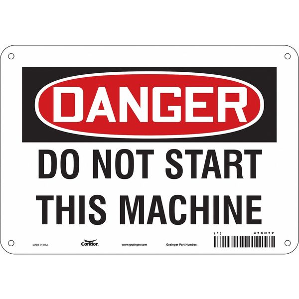 Safety Sign, 7 in Height, 10 in Width, Aluminum, Vertical Rectangle, English, 478N72SKU G5821720Categories SafetyDescription Safety Sign, Vertical Rectangle, Number of Printed Sides 1, English, Sign Format Traditional OSHA, Sign Legend Do Not Start This Machine, Sign Legend Background Color White, Sign Legend Style TextgraingerSKU: 478N72, mscSKU: , zoro_no: G5821720, mongo_id: 65bbe9ad22d7a989a996f179