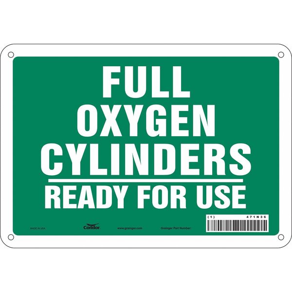 Safety Sign, 7 in Height, 10 in Width, Polyethylene, Vertical Rectangle, English, 471N36SKU G5527982Categories SafetyDescription Safety Sign, Vertical Rectangle, Number of Printed Sides 1, English, Sign Format Other Format, Sign Legend Full Oxygen Cylinders Ready For Use, Sign Legend Background Color Green, Sign Legend Style TextgraingerSKU: 471N36, mscSKU: , zoro_no: G5527982, mongo_id: 65bbe9ad22d7a989a996f152