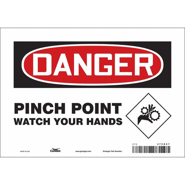 Safety Sign, 7 in Height, 10 in Width, Vinyl, Vertical Rectangle, English, 475D07SKU G5506538Categories SafetyDescription Safety Sign, Vertical Rectangle, Number of Printed Sides 1, English, Sign Format Traditional OSHA, Sign Legend Pinch Point Watch Your Hands, Sign Legend Background Color White, Sign Legend Style Symbol and TextgraingerSKU: 475D07, mscSKU: , zoro_no: G5506538, mongo_id: 65bbe9ad22d7a989a996f387