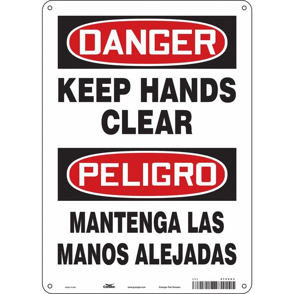 Safety Sign, 14 in Height, 10 in Width, Aluminum, Vertical Rectangle, English, Spanish, 475C63SKU G5129323Categories SafetyDescription Safety Sign, Vertical Rectangle, Number of Printed Sides 1, English, Spanish, Sign Format Traditional OSHA, Sign Legend Keep Hands Clear/Mantener Las Manos Alejadas, Sign Legend Background Color White, Sign Legend Style TextgraingerSKU: 475C63, mscSKU: , zoro_no: G5129323, mongo_id: 65bbe9ad22d7a989a996f37e