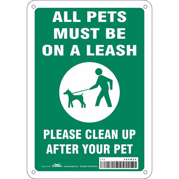 Safety Sign, 10 in Height, 7 in Width, Aluminum, Horizontal Rectangle, English, 485M29SKU G6305840Categories SafetyDescription Safety Sign, Horizontal Rectangle, Number of Printed Sides 1, English, Sign Legend All Pets Must Be On A Leash Please Clean Up After Your Pet, Sign Legend Background Color Green, White, Sign Legend Style Symbol and TextgraingerSKU: 485M29, mscSKU: , zoro_no: G6305840, mongo_id: 65bbe9ad22d7a989a996f38c