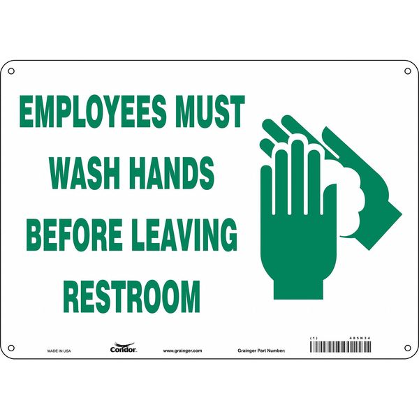 Safety Sign, 10 in Height, 14 in Width, Aluminum, Horizontal Rectangle, English, 485N34SKU G6270140Categories SafetyDescription Safety Sign, Horizontal Rectangle, Number of Printed Sides 1, English, Sign Legend Employees Must Wash Hands Before Leaving Restroom, Sign Legend Background Color White, Sign Legend Style Symbol and TextgraingerSKU: 485N34, mscSKU: , zoro_no: G6270140, mongo_id: 65bbe9ad22d7a989a996f34c