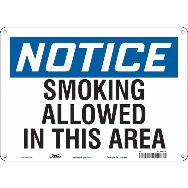 SKU G5860187Categories SafetyDescription Safety Sign, Horizontal Rectangle, Number of Printed Sides 1, English, Sign Format Traditional OSHA, Sign Legend Smoking Allowed In This Area, Sign Legend Background Color White, Sign Legend Style TextgraingerSKU: 474W02, mscSKU: , zoro_no: G5860187, mongo_id: 65bbe9ad22d7a989a996f137
