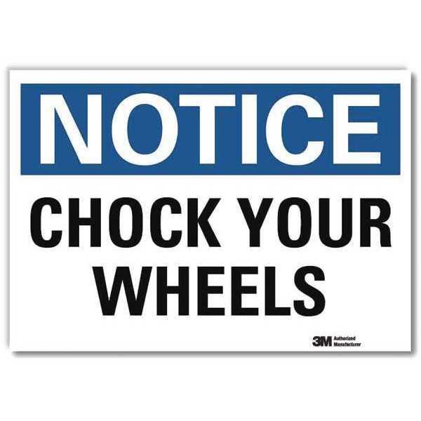 Notice Sign, 5 in H, 7 in W, Reflective Sheeting, Horizontal Rectangle, English, U5-1096-RD_7X5SKU G2764435Categories SafetyDescription Notice Sign, Horizontal Rectangle, Number of Printed Sides 1, English, Sign Format Traditional OSHA, Sign Legend Chock Your Wheels, Sign Legend Background Color White, Sign Legend Style TextgraingerSKU: 34JJ51, mscSKU: , zoro_no: G2764435, mongo_id: 65bbe9ad22d7a989a996ee93