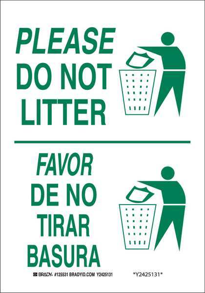 SKU G7391647Categories SafetyDescription Facility Sign, Sign Subject Matter Cleaning and Maintenance, Height 10 In., Width 7 In., Sign Material Aluminum, Sign Mounting Style With Mounting Holes, Header No Header, Legend Please Do Not Litter/Favor De No Tirar Basura, Printed Language English, Spanish, Sign Shape RectanglegraingerSKU: , mscSKU: , zoro_no: G7391647, mongo_id: 65bbe9ad22d7a989a996efa4