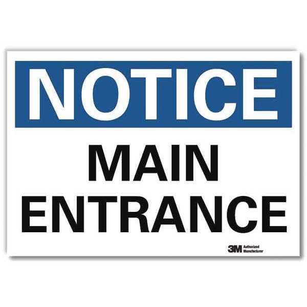 SKU G2760838Categories SafetyDescription Notice Sign, Vertical Rectangle, Number of Printed Sides 1, English, Sign Format Traditional OSHA, Sign Legend Main Entrance, Sign Legend Background Color White, Sign Legend Style TextgraingerSKU: 34JP94, mscSKU: , zoro_no: G2760838, mongo_id: 65bbe9ad22d7a989a996ecda