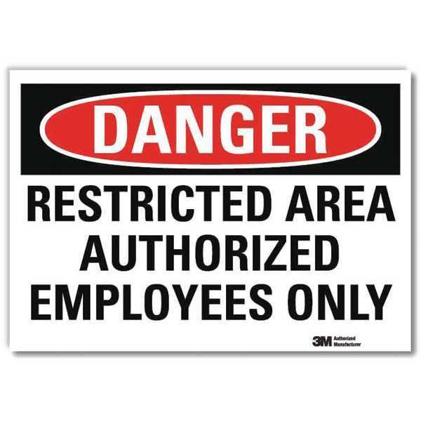 Danger Sign, 5 in H, 7 in W, Reflective Sheeting, Horizontal Rectangle, English, U3-1952-RD_7X5SKU G2739941Categories SafetyDescription Danger Sign, Horizontal Rectangle, Number of Printed Sides 1, English, Sign Format Traditional OSHA, Sign Legend Restricted Area Authorized Employees Only, Sign Legend Background Color White, Sign Legend Style TextgraingerSKU: 34NF94, mscSKU: , zoro_no: G2739941, mongo_id: 65bbe9ad22d7a989a996eeb5