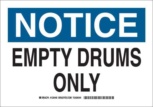 SKU G7394937Categories SafetyDescription Notice Sign, Sign Subject Matter Facility, Height 10 In., Width 14 In., Sign Material Aluminum, Sign Mounting Style With Mounting Holes, Header Notice, Legend Empty Drums Only, Printed Language English, Sign Shape Rectangle$32.11 / eachWeb priceNotice Sign, 10X14", Blk and Ble/White, Printed Language: English, 126441SKU G7394937Categories SafetyDescription Notice Sign, Sign Subject Matter Facility, Height 10 In., Width 14 In., Sign Material Aluminum, Sign Mounting Style With Mounting Holes, Header Notice, Legend Empty Drums Only, Printed Language English, Sign Shape Rectangle$32.11 / eachWeb price -