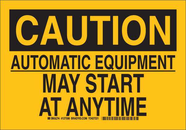 SKU G8627591Categories SafetyDescription Caution Sign, Sign Subject Matter Machine and Operational, Height 10 In., Width 14 In., Sign Material Aluminum, Header Caution, Legend Automatic Equipment May Start At Anytime, Printed Language English, Sign Shape Rectangle$32.11 / eachWeb priceCaution Sign, 10" Height, 14" Width, Aluminum, Rectangle, EnglishSKU G8627591Categories SafetyDescription Caution Sign, Sign Subject Matter Machine and Operational, Height 10 In., Width 14 In., Sign Material Aluminum, Header Caution, Legend Automatic Equipment May Start At Anytime, Printed Language English, Sign Shape Rectangle$32.11 / eachWeb price -