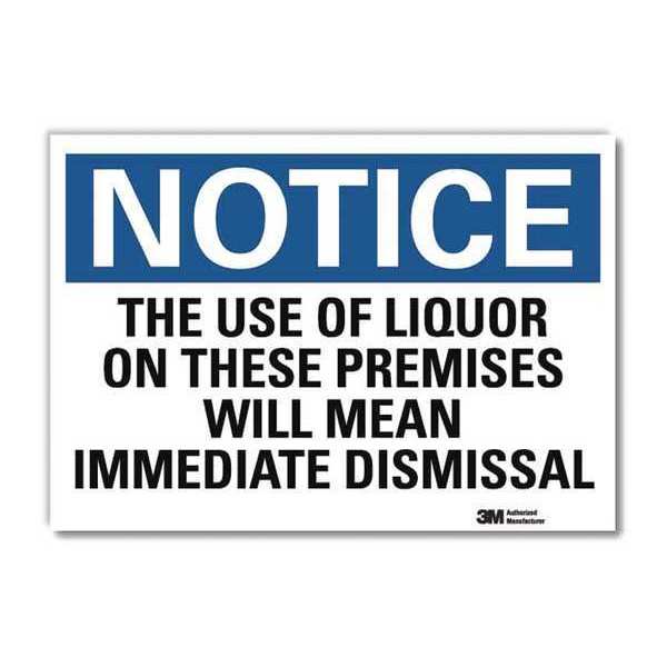 Notice Sign, 5 in H, 7 in W, Reflective Sheeting, Horizontal Rectangle, English, U5-1540-RD_7X5SKU G2757231Categories SafetyDescription Notice Sign, Horizontal Rectangle, Number of Printed Sides 1, English, Sign Format Traditional OSHA, Sign Legend The Use Of Liquor On These Premises Will Mean Immediate Dismissal, Sign Legend Background Color White, Sign Legend Style TextgraingerSKU: , mscSKU: , zoro_no: G2757231, mongo_id: 65bbe9ad22d7a989a996ef3b