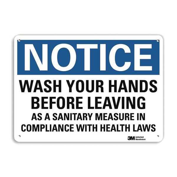 Notice Sign, RecycldReflecAlum, 10inWx7inH, U5-1613-RA_10X7SKU G2756245Categories SafetyDescription Notice Sign, Vertical Rectangle, Number of Printed Sides 1, English, Sign Format Traditional OSHA, Sign Legend Wash Your Hands Before Leaving As A Sanitary Measure In Compliance With Health Laws, Sign Legend Background Color White, Sign Legend Style TextgraingerSKU: 34JY89, mscSKU: , zoro_no: G2756245, mongo_id: 65bbe9ad22d7a989a996ee0d