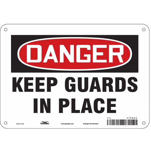 Safety Sign, 7 in Height, 10 in Width, Aluminum, Vertical Rectangle, English, 475G02SKU G5638101Categories SafetyDescription Safety Sign, Vertical Rectangle, Number of Printed Sides 1, English, Sign Format Traditional OSHA, Sign Legend Keep Guards In Place, Sign Legend Background Color White, Sign Legend Style TextgraingerSKU: 475G02, mscSKU: , zoro_no: G5638101, mongo_id: 65bbe98822d7a989a9960a64