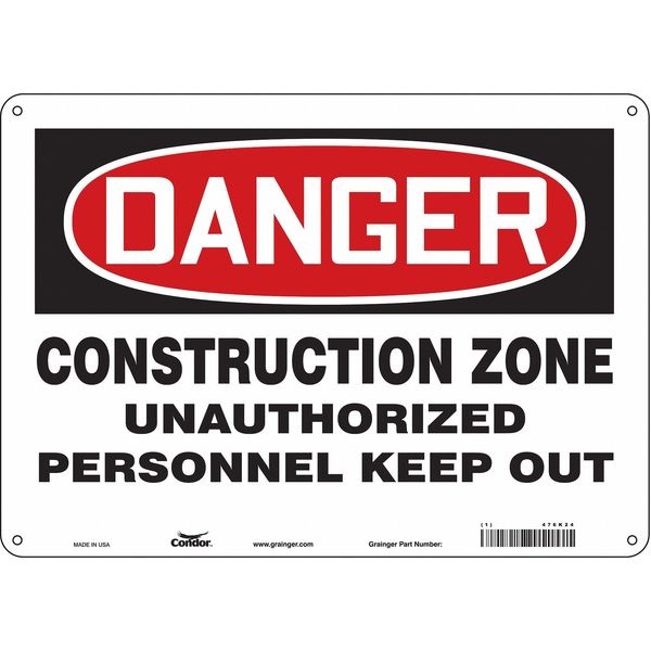 Safety Sign, 10 in Height, 14 in Width, Aluminum, Horizontal Rectangle, English, 476K24SKU G5834363Categories SafetyDescription Safety Sign, Horizontal Rectangle, Number of Printed Sides 1, English, Sign Format Traditional OSHA, Sign Legend Construction Zone Unauthorized Personnel Keep Out, Sign Legend Background Color White, Sign Legend Style TextgraingerSKU: 476K24, mscSKU: , zoro_no: G5834363, mongo_id: 65bbe98822d7a989a9960ac1