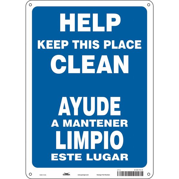 SKU G5386077Categories SafetyDescription Safety Sign, Vertical Rectangle, Number of Printed Sides 1, English, Spanish, Sign Legend Help Keep This Place Clean Ayude A Mantener Limpio Este Lugar, Sign Legend Background Color Blue, Sign Legend Style TextgraingerSKU: 468Y23, mscSKU: , zoro_no: G5386077, mongo_id: 65bbe98822d7a989a9960a7e