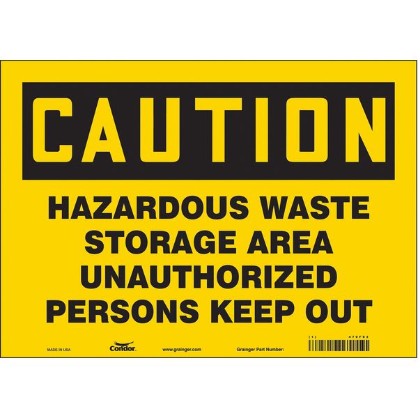 SKU G5520879Categories SafetyDescription Safety Sign, Horizontal Rectangle, Number of Printed Sides 1, English, Sign Format Traditional OSHA, Sign Legend Hazardous Waste Storage Area Unauthorized Persons Keep Out, Sign Legend Background Color Yellow, Sign Legend Style TextgraingerSKU: 470F83, mscSKU: , zoro_no: G5520879, mongo_id: 65bbe98822d7a989a9960a74