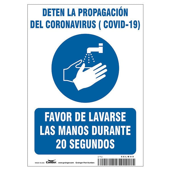 Covid 19 Sign 7X10, Spanish Prevent Covi, 7 in Height, 10 in Width, Polystyrene, SpanishSKU G7660844Categories SafetyDescription Covid 19 Sign 7X10, Spanish Prevent Covi, Sign Subject Matter Coronavirus Prevention, Height 7 in, Width 10 in, Sign Material Polystyrene, Sign Mounting Style With Mounting Holes, Header No Header, Legend Deten El Propagación Del Coronavirus (COVID-19); Favor De Lavarse Las Manos Durante 20 Segundos, Printed Language SpanishgraingerSKU: 56LM99, mscSKU: , zoro_no: G7660844, mongo_id: 65bbe98822d7a989a9960c00