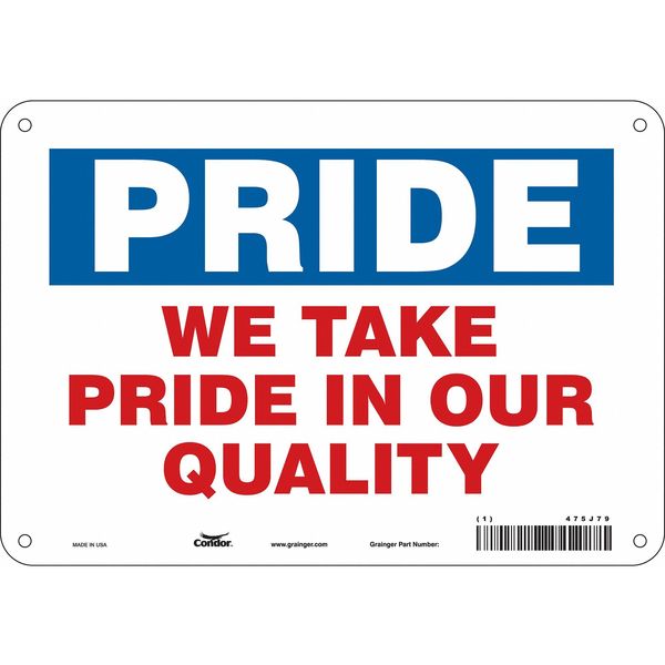 Safety Sign, 7 in Height, 10 in Width, Aluminum, Vertical Rectangle, English, 475J79SKU G5620863Categories SafetyDescription Safety Sign, Vertical Rectangle, Number of Printed Sides 1, English, Sign Format Other Format, Sign Legend We Take Pride In Our Quality, Sign Legend Background Color Blue, White, Sign Legend Style TextgraingerSKU: 475J79, mscSKU: , zoro_no: G5620863, mongo_id: 65bbe98822d7a989a9960b0e