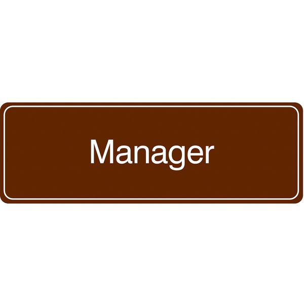 SKU G6285723Categories SafetyDescription Facility Sign, Horizontal Rectangle, Number of Printed Sides 1, English, Sign Format Other Format, Sign Legend Manager, Sign Legend Background Color Brown, Sign Legend Style TextgraingerSKU: 486H03, mscSKU: , zoro_no: G6285723, mongo_id: 65bbe98822d7a989a9960ac3