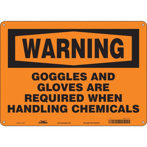 Safety Sign, 10 in Height, 14 in Width, Aluminum, Horizontal Rectangle, English, 468T18SKU G5584953Categories SafetyDescription Safety Sign, Horizontal Rectangle, Number of Printed Sides 1, English, Sign Format Traditional OSHA, Sign Legend Goggles And Gloves Are Required When Handling Chemicals, Sign Legend Background Color Orange, Sign Legend Style TextgraingerSKU: 468T18, mscSKU: , zoro_no: G5584953, mongo_id: 65bbe98822d7a989a9960aef