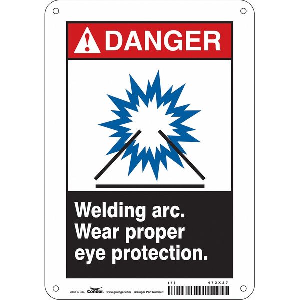 Safety Sign, 10 in Height, 7 in Width, Aluminum, Horizontal Rectangle, English, 473X27SKU G5557428Categories SafetyDescription Safety Sign, Horizontal Rectangle, Number of Printed Sides 1, English, Sign Format ANSI/OSHA Format, Sign Legend Welding Arc. Wear Proper Eye Protection., Sign Legend Background Color Black, White, Sign Legend Style Symbol and TextgraingerSKU: 473X27, mscSKU: , zoro_no: G5557428, mongo_id: 65bbe98822d7a989a9960b42