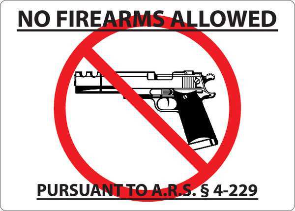 SKU G8792524Categories SafetyDescription Arizona Concealed Carry Sign, Horizontal Rectangle, Number of Printed Sides 1, English, Sign Legend No Firearms Allowed, Pursuant To A.R.S. 4-229, Sign Legend Background Color White, Sign Legend Style Symbol and Text, Sign Legend Character Height 7/8 ingraingerSKU: 32KJ46, mscSKU: , zoro_no: G8792524, mongo_id: 65bbe98822d7a989a9960828