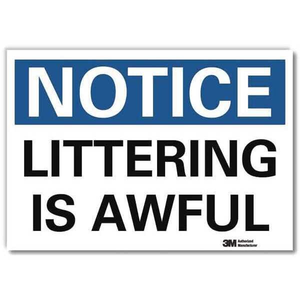 NoticeSign, ReflecSelfAdhVinyl, 10inWx7inH, U5-1308-RD_10X7SKU G2760917Categories SafetyDescription Notice Sign, Vertical Rectangle, Number of Printed Sides 1, English, Sign Format Traditional OSHA, Sign Legend Littering Is Awful, Sign Legend Background Color White, Sign Legend Style TextgraingerSKU: 34JP84, mscSKU: , zoro_no: G2760917, mongo_id: 65bbe98822d7a989a9960583