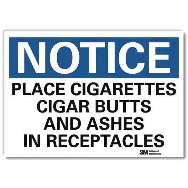 SKU G2758887Categories SafetyDescription Notice Sign, Horizontal Rectangle, Number of Printed Sides 1, English, Sign Format Traditional OSHA, Sign Legend Place Cigarettes Cigar Butts And Ashes In Receptacles, Sign Legend Background Color White, Sign Legend Style TextgraingerSKU: 34JU98, mscSKU: , zoro_no: G2758887, mongo_id: 65bbe98822d7a989a99605e8