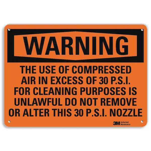 Warning Sign, 7 in H, 10 in W, Vertical Rectangle, English, U6-1232-RA_10X7SKU G2713999Categories SafetyDescription Warning Sign, Vertical Rectangle, Number of Printed Sides 1, English, Sign Format Traditional OSHA, Sign Legend The Use Of Compressed Air In Excess Of 30 P.S.I For Cleaning Purposes Is Unlawful Do Not Remove Or Alter This 30 P.S.I. Nozzle, Sign Legend Background Color White, Sign Legend Style TextgraingerSKU: 35KN61, mscSKU: , zoro_no: G2713999, mongo_id: 65bbe98822d7a989a9960579