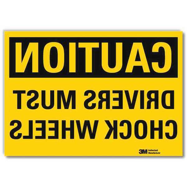 Safety Sign, 5 in H, 7 in Width, Reflective Sheeting, Horizontal Rectangle, English, U4-1220-RD_7X5SKU G2723659Categories SafetyDescription Safety Sign, Horizontal Rectangle, Number of Printed Sides 1, English, Sign Format Traditional OSHA, Sign Legend Drivers Must Chock Wheels (Mirrored Image), Sign Legend Background Color Yellow, Sign Legend Style TextgraingerSKU: 35JM57, mscSKU: , zoro_no: G2723659, mongo_id: 65bbe98822d7a989a9960626