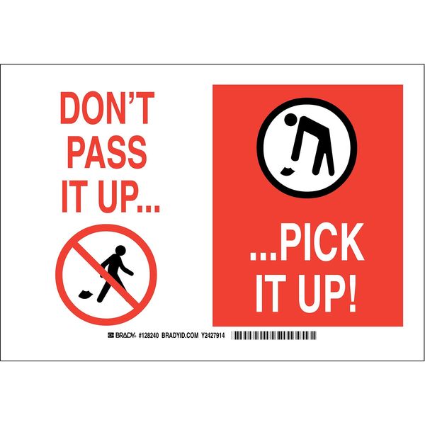 SKU G8469653Categories SafetyDescription Facility Sign, Sign Subject Matter Cleaning and Maintenance, Height 7 In., Width 10 In., Sign Material Polyester, Sign Mounting Style Adhesive Surface, Header No Header, Legend Don't Pass It Up... Pick It Up, Printed Language English, Sign Shape Rectangle$11.49 / eachWeb priceFacility Sign, Poly, 7X10", Blk/Red/Wht, 128240SKU G8469653Categories SafetyDescription Facility Sign, Sign Subject Matter Cleaning and Maintenance, Height 7 In., Width 10 In., Sign Material Polyester, Sign Mounting Style Adhesive Surface, Header No Header, Legend Don't Pass It Up... Pick It Up, Printed Language English, Sign Shape Rectangle$11.49 / eachWeb price -