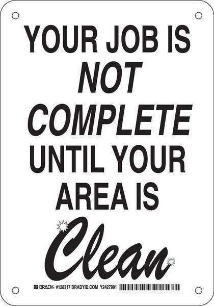 SKU G8459451Categories SafetyDescription Facility Sign, Sign Subject Matter Cleaning and Maintenance, Height 10 In., Width 7 In., Sign Material Plastic, Sign Mounting Style With Mounting Holes, Header No Header, Legend Your Job Is Not Complete Until Your Area Is Clean, Printed Language English, Sign Shape Rectangle$11.94 / eachWeb priceFacility Sign, Plastic, 10X7", Grn/Wht, 128317SKU G8459451Categories SafetyDescription Facility Sign, Sign Subject Matter Cleaning and Maintenance, Height 10 In., Width 7 In., Sign Material Plastic, Sign Mounting Style With Mounting Holes, Header No Header, Legend Your Job Is Not Complete Until Your Area Is Clean, Printed Language English, Sign Shape Rectangle$11.94 / eachWeb price -