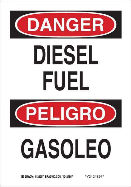 SKU G7372911Categories SafetyDescription Danger Sign, Sign Subject Matter Chemical, Gas or Hazardous Materials, Height 20 in, Width 14 in, Sign Material Fiberglass, Sign Mounting Style With Mounting Holes, Header Danger/Peligro, Legend Diesel Fuel/Gasoleo, Printed Language English, Spanish, Sign Shape Rectangle$67.49 / eachWeb priceDanger Sign, 20 in H, 14 in W, Fiberglass, Rectangle, English, Spanish, 39951SKU G7372911Categories SafetyDescription Danger Sign, Sign Subject Matter Chemical, Gas or Hazardous Materials, Height 20 in, Width 14 in, Sign Material Fiberglass, Sign Mounting Style With Mounting Holes, Header Danger/Peligro, Legend Diesel Fuel/Gasoleo, Printed Language English, Spanish, Sign Shape Rectangle$67.49 / eachWeb price -