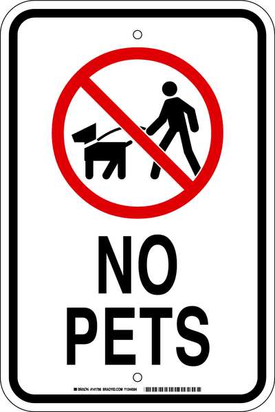 Pet Sign, 18"X12", Aluminum, Sign Background Color: Black, White, 141786