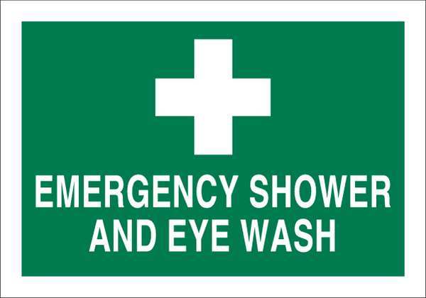 Shower/Eye Wash Sign, 7" Height, 10" Width, Polyester, Rectangle, English