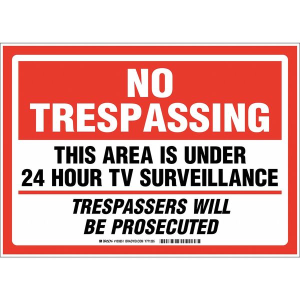 SKU G1213220Categories SafetyDescription No Trespassing Sign, Sign Subject Matter Security and Surveillance, Height 10 in, Width 14 in, Sign Material Plastic, Sign Mounting Style With Mounting Holes, Header No Trespassing, Legend This Area Is Under 24 Hour TV Surveillance Trespassers Will Be Prosecuted, Printed Language English, Sign Shape Rectangle$17.49 / eachWeb priceNo Trespassing Sign, 10 in Height, 14 in Width, Plastic, Rectangle, EnglishSKU G1213220Categories SafetyDescription No Trespassing Sign, Sign Subject Matter Security and Surveillance, Height 10 in, Width 14 in, Sign Material Plastic, Sign Mounting Style With Mounting Holes, Header No Trespassing, Legend This Area Is Under 24 Hour TV Surveillance Trespassers Will Be Prosecuted, Printed Language English, Sign Shape Rectangle$17.49 / eachWeb price -