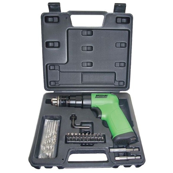 SKU G4856135CategoriesDescription Drill, Pistol Body Style - Air Tools, Free Speed 2,000 RPM, Torque 5.40 ft-lb, Average CFM @ 15 Second Run Time 3.50, CFM @ Full Load 18.3, Required Pressure 90 psi, Min. Hose Size 3/8 in, Handle Material Composite, Variable Speed Yes, Throttle Type Trigger, Bearings Ball, Housing Material Composite, Gear Train Planetary, Overall Length 8 1/4 in, Right Angle Length 7 1/8 in, Tool Weight 2 lbgraingerSKU: 10D240, mscSKU: , zoro_no: G4856135, mongo_id: 65bbe5b33aaddbd5a9fdf1c6