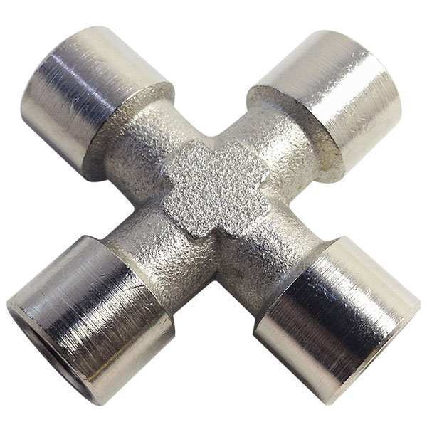 Description Female Cross, Brass, Nickel-Plated, 1/4 in, Female, BSPP, 1/4 in, Female, BSPP, 1/4 in, Female, BSPP, 1/4 in, Female, BSPP, 870 psi Maximum Operating Pressure