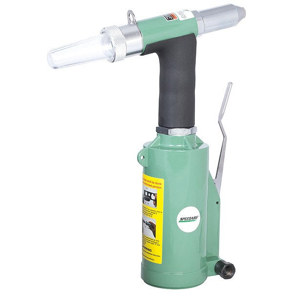 $3,087.49 / eachWeb priceAir Riveter, Industrial, 4800 lb.SKU G2774475CategoriesDescription Rivet Tool, Air Powered, Air Consumption 0.27 cfm, Air Inlet 1/4 in NPT Female, Air Pressure 90 psi, Max. Air Pressure 95 psi, Min. Air Pressure 70 psi, Min. Hose Size 3/8 in, Exhaust Location Side, Duty Rating Industrial Duty, Tool Brand Speedaire, For Rivet Nut Thread Size #10-24, #10-32, #8-32, 1/2 In.-13, 1/4 In.-20, 3/8 In.-16, 5/16 In.-18, Pulling Force 6,000 lbf, Rivet Type Rivet Nut, Stroke Length 1/4 in, Overall Length 11 1/4 in, Overall Height 12 1/4 in, Overall Width 3 7/8 ingraingerSKU: 3CRH8, mscSKU: , zoro_no: G2774475, mongo_id: 65bbe86b9a749db822790186