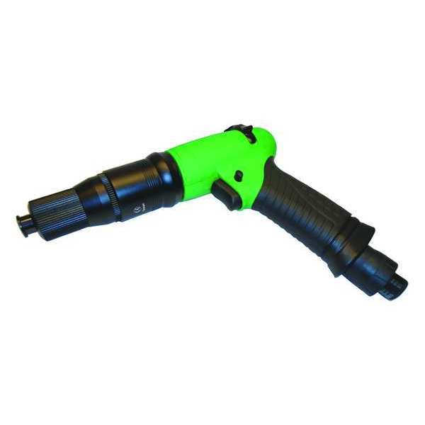 Description Screwdriver, Pistol Body Style - Air Tools, Torque Range Soft Draw 11 to 65 in-lb, Max. Torque 5.4 ft-lb, Clutch Type - Air Screwdriver Auto Shut-Off, Trigger Throttle Type - Air Screwdrivers, Free Speed 1,000 RPM, Industrial Duty Duty Cycle - Air Tools, 4.80 Average CFM @ 15 Second Run Time, 19.4 CFM @ Full Load, Required Pressure 90 psi, Min. Hose Size 1/4 in, Overall Length 8 5/8 in, Hex Bit 1/4 in, Industrial Fastening Operation