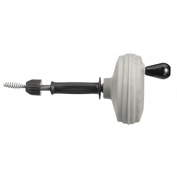 SKU G1302463CategoriesDescription Drain Cleaner, Product Type Hand Spinner, Cable Length 25 ft, End Type Included Bulb Head, Cable Feed Type Manual, Minimum Pipe Size 0.75 in, Maximum Pipe Size 1.5 in, Drum Material Molded Plastic, Compatible Fixture Type Drain Lines, Cable Features Hollow Core, Cable Diameter 5/16 in, Chuck Type Slip-Resistant Collet Chuck, Features Open Drum Design, Slip-Resistant Collet Chuck Grip with Flick-of-the-Wrist, Includes 25 ft Hollow Core Cable with Bulb Auger, Tool Weight 6 lbgraingerSKU: , mscSKU: , zoro_no: G1302463, mongo_id: 65bbe5f93aaddbd5a9ffb948