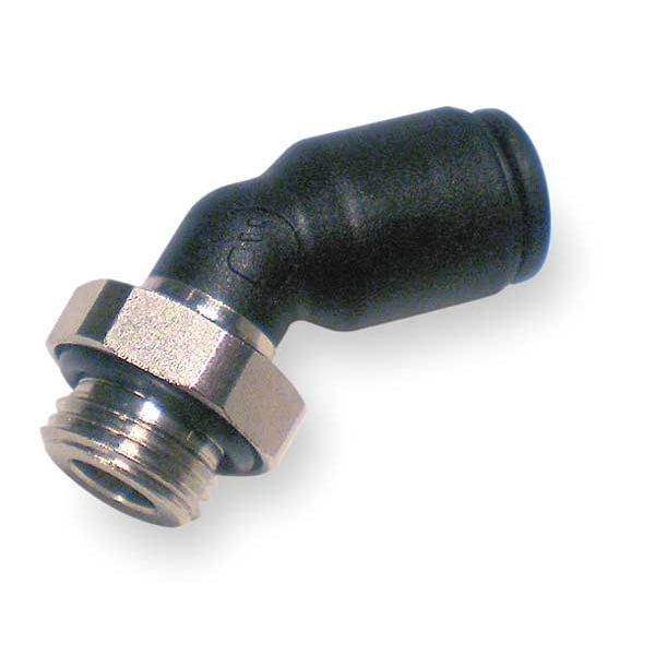 SKU G2289725CategoriesDescription Male Elbow, Application Air, Cutting Fluids, Inert Gases, Vacuum, Fitting Side A Connection Type Push-to-Connect, Fitting Side B Connection Type Male Metric, Fitting Side B Pipe Size 5 mm, Fitting Side A Tube Outer Diameter 6 mm, Fitting Material Nylon, Fitting Thread Size 5, Color Black, Includes Pre-Applied Thread Sealant No, Maximum Operating Pressure 290 psi, Maximum Operating Temperature 175 Degrees F, Overall Length 30 mm, Specific Fitting Shape 45 Degrees Elbow AdaptergraingerSKU: , mscSKU: 86768009, zoro_no: G2289725, mongo_id: 65bbe8b722d7a989a990e58f