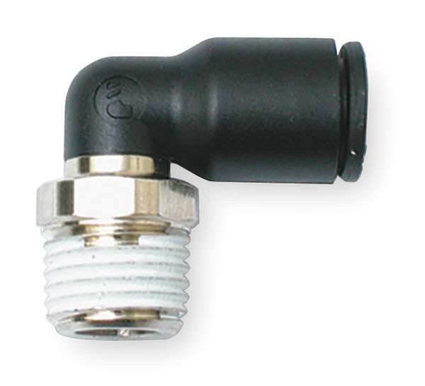 SKU G0985126CategoriesDescription Elbow, Application Air, Cutting Fluids, Inert Gases, Vacuum, Fitting Side A Connection Type Push-to-Connect, Fitting Side B Connection Type MNPT, Fitting Side B Pipe Size 1/4 in, Fitting Side A Tube Outer Diameter 10 mm, Fitting Material Nylon, Fitting Thread Size 1/4, Color Black, Includes Pre-Applied Thread Sealant Yes, Maximum Operating Pressure 290 psi, Maximum Operating Temperature 175 Degrees F, Overall Length 29/32 in, Specific Fitting Shape 90 Degrees Elbow Adapter, Release Type ButtongraingerSKU: 1DCY8, mscSKU: 85333995, zoro_no: G0985126, mongo_id: 65bbe94a22d7a989a9947b07